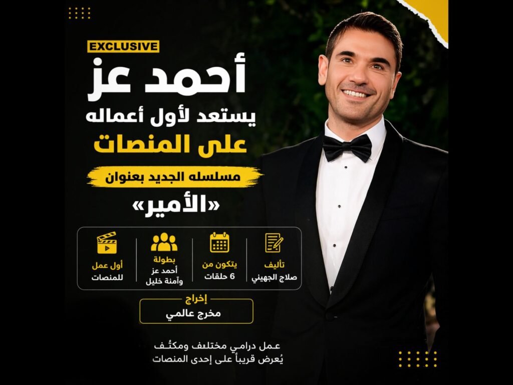 يواصل النجم أحمد عز، تحضيراته لخوض تجربة درامية جديدة تُعرض عبر إحدى المنصات الرقمية، في خطوة تُعد الأولى له في هذا المجال، بعد سلسلة من النجاحات السينمائية والتلفزيونية التي حققها خلال السنوات الماضية.
