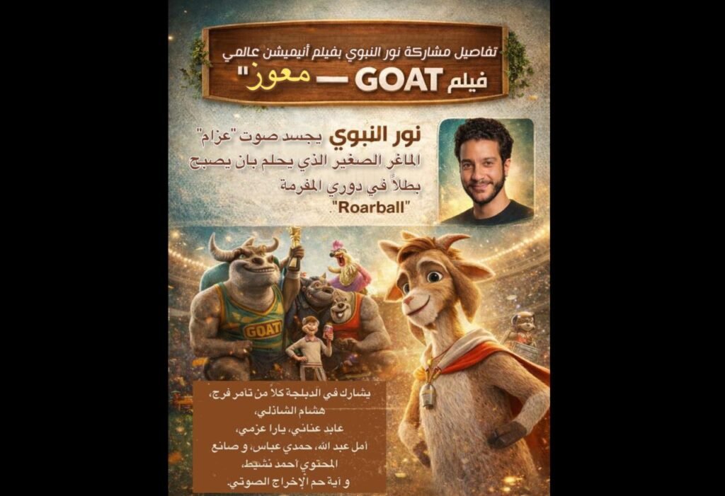 تستعد دور العرض في مصر والوطن العربي لاستقبال فيلم الأنيميشن العالمي “معوز – GOAT” بنسخته العربية المدبلجة باللهجة المصرية، والذي يشهد مشاركة الفنان الشاب نور النبوي، في تجربة جديدة ومختلفة عليه.
