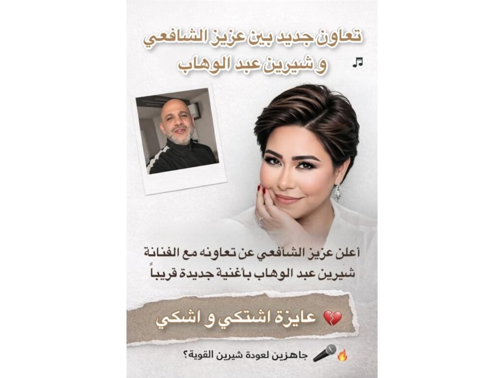 أعلن الشاعر والملحن عزيز الشافعي عن تعاون جديد يجمعه بالمطربة شيرين عبد الوهاب، من خلال أغنية تحمل عنوان “عايزة أشتكي وأشكي”، في خطوة اعتبرها الجمهور بمثابة عودة قوية لشيرين إلى الساحة الغنائية.